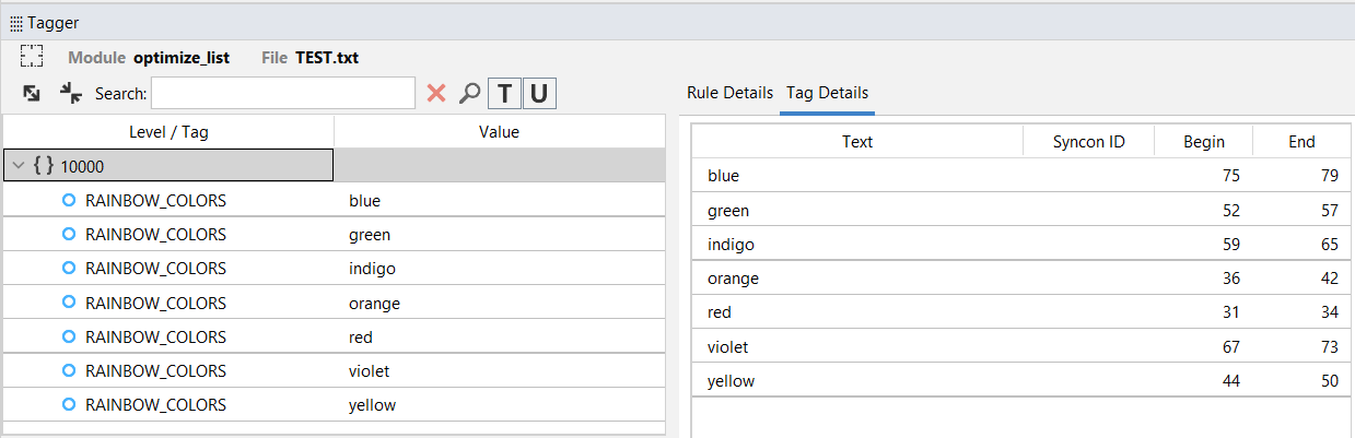 In this case, each color has been individually tagged. Evidence is in the Tagger tool window, because there are seven different tags with the corresponding values corresponding to each TagEntry available in the detail panel on the right of the Semantic Analysis tool window.