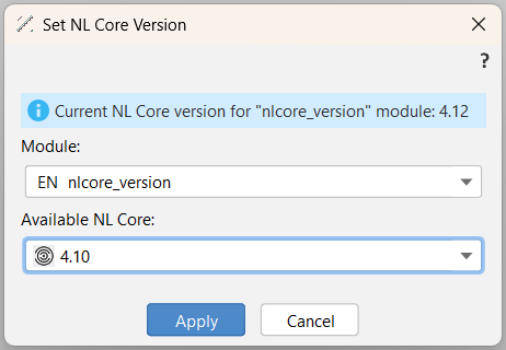 Select the NL Core version under Available NL Core.