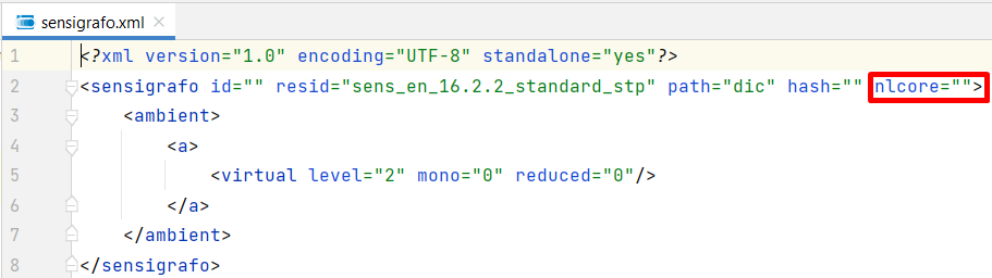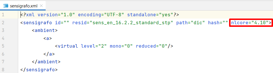 At the end of the process, you will see the sensigrafo.xml file opened with the NL Core version you selected. This is what you see if you select one of the three versions available: