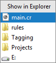 - Right click the file tab in the editor and choose Open In > File Path.