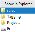 A pop-up window will show the path as a list of folders—from the selected folder down to the disk drive —you can open in Explorer.