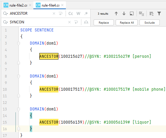 • To exclude a match from replacement, select Exclude; select Include to re-include it.
