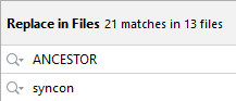 The Replace in Files window appears.