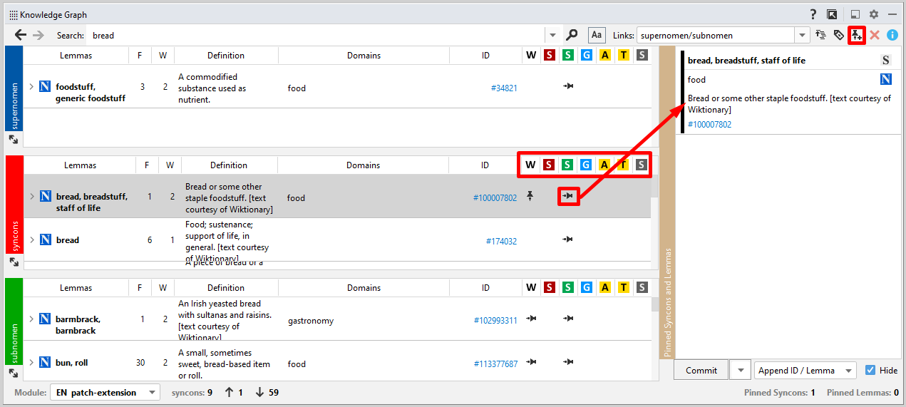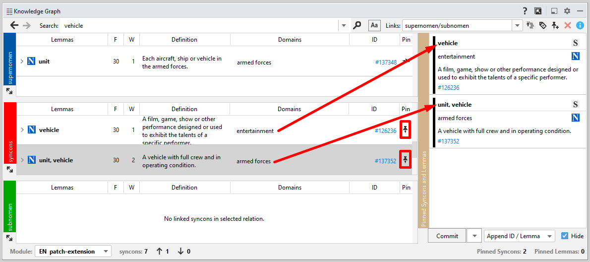 To pin all the syncon's lemmas, right-click the syncon and choose Pin All Lemmas.