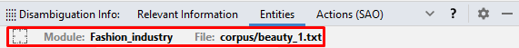 | Disambiguation Info | Allows viewing and browsing the relevant disambiguation results of the last run |