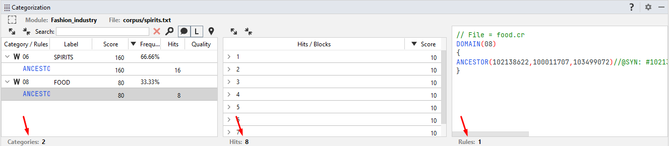 | Sentence Hits | Allows viewing and browsing all the results of the last run for selected sentences |