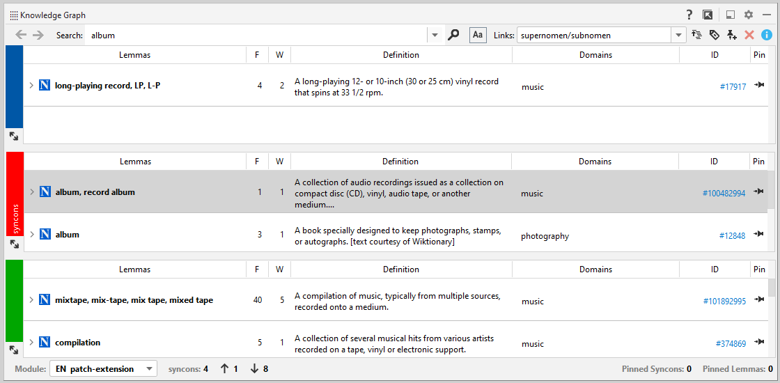 | Links list | Knowledge graph links. After a search, only the links the current syncon belongs to are shown. | |