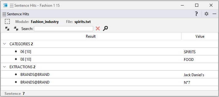 | Double-click a detail row | Set the focus in the tool windows that show the whole-document results for the operation that produced the result (e.g. category → operation: categorization → tool window: Categorization) |