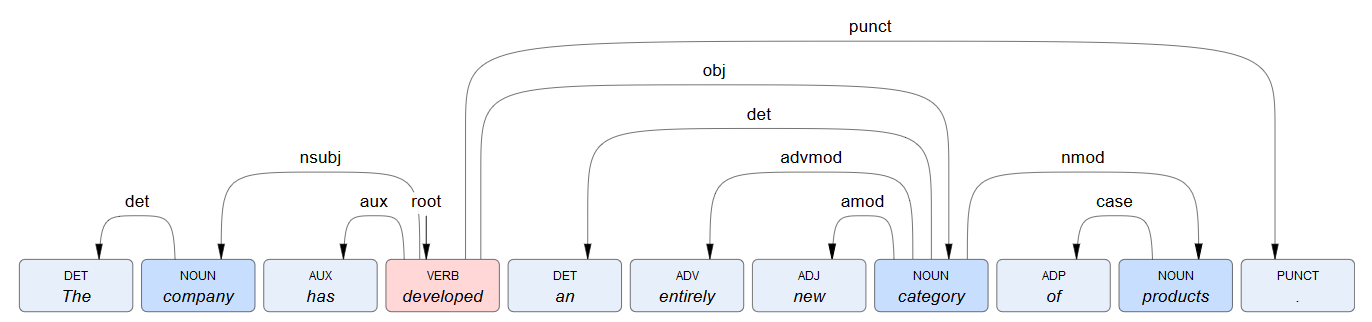 | Token index | Token text | Head token index | Universal dependency label |